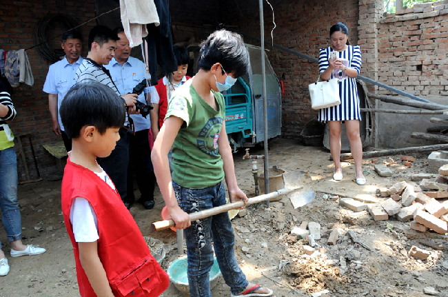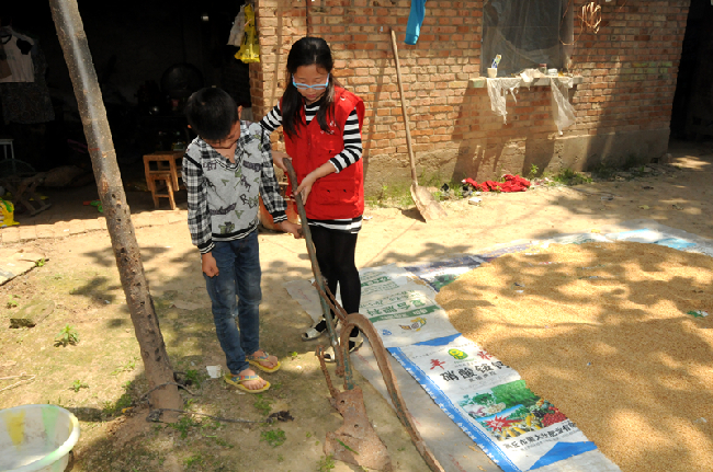 在其他留守儿童家中,小朋友们还拿起铁锹,互相学习使用技巧,家长也加入到讨论的行列中,与小朋友共同体验农村生活,邓茗心的妈妈活动中深有感触地说:这项活动太好了,我们以后准备经常带孩子来这里体验生活,特别是农忙时,过来给许艺篷家帮忙。